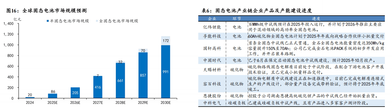 规划产能超400GWh,2028年无望进入GWh级使用级别。据高工锂电数据,截至2024年11月我国固态电池财产链企业超200家,行业累计规划产能超400GWh。全固态电池无望正在手艺冲破、工程化量产及下逛验证完成后,于2028年进入GWh级使用阶段。据《2025年固态电池高质量成长蓝皮书》预测,到2030年全球固态电池出货量将达到614。1GWh,全固态电池市场规模将达172亿元。