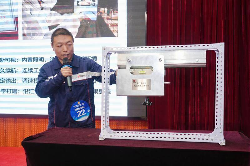 决赛现场,各项目从讲人通过PPT取实物演示,阐述项目立异点、手艺突,及使用成效,活泼呈现了一个个源自出产实践、旨正在破解难题的“金点子”。